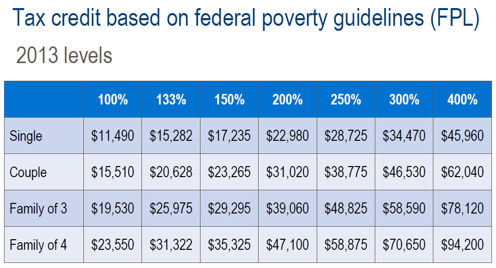Tax credits cap the amount of money eligible individuals pay each month for health insurance. To understand the impact tax credits will have on the cost of health insurance, let’s take a look at three different scenarios for Joe and Mary Jones and their two children.